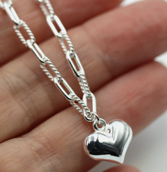 Sterling Silver Clip Paper Clip link Necklace Chain + Rose Plated Heart Pendant