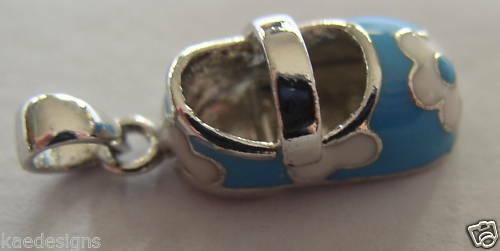 Genuine Sterling Silver Blue Flower Enamel Shoe Charm