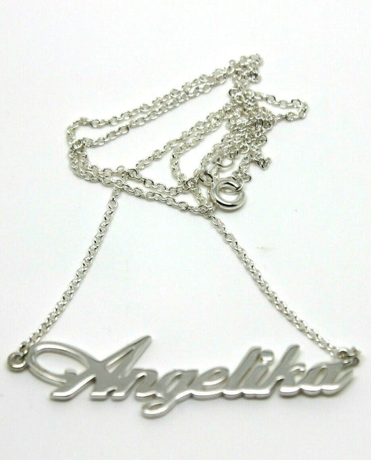 Genuine Sterling Silver Curb Link Or Belcher Chain + Large Name Plate Pendant