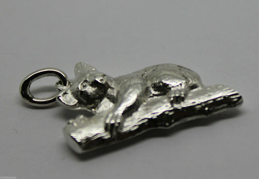 Genuine Sterling Silver Solid Koala On Tree 3D Pendant