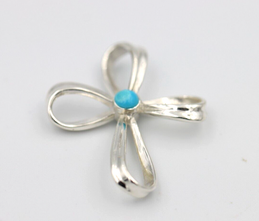 Kaedesigns, New Genuine Sterling Silver Cross Blue Turquoise Set Cross Pendant