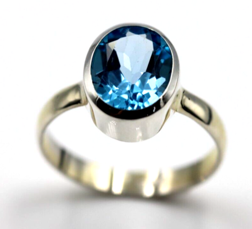 Size N / 6.5 Genuine Sterling Silver Blue Topaz Oval Ring