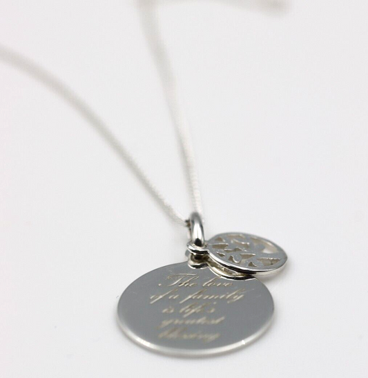 Sterling Silver 'The love of a family is life's greatest blessing' Disc Necklace Chain