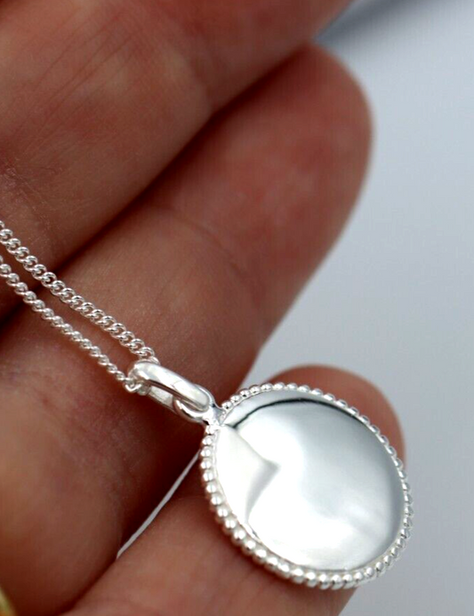 Sterling Silver 16mm Disc Pendant Engraving Available + Kerb Chain with 45cm + 5cm extender