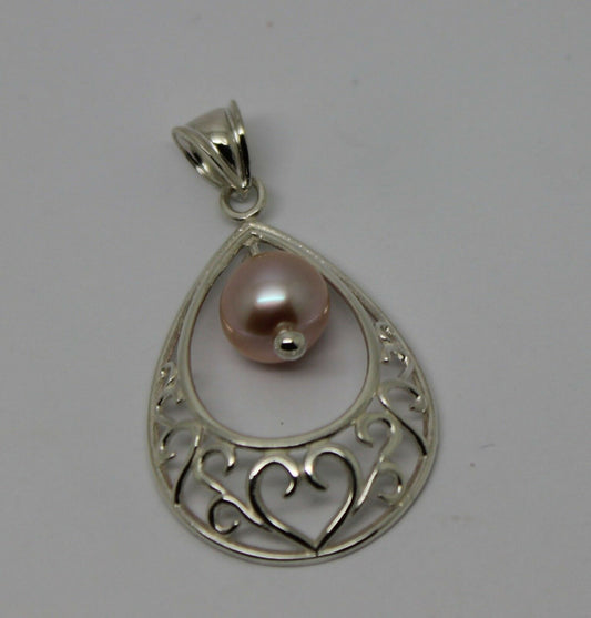 Sterling Silver 8mm White Pearl Heart Teardrop Tear Drop Pendant