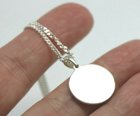 Sterling Silver 925 16mm Disc Pendant or Charm Engraving Available + 50cm Kerb Chain