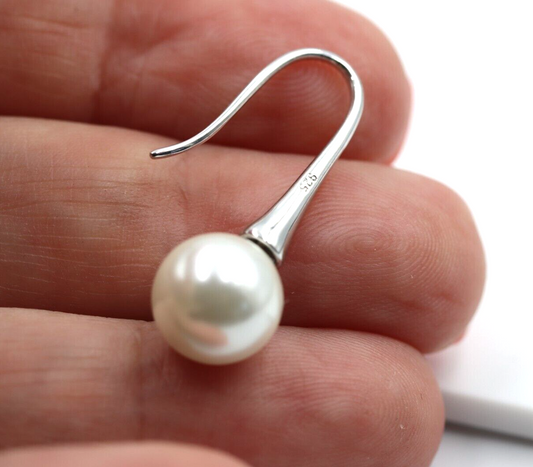 Sterling Silver 925 10mm Shell Pearl Ball Drop Earrings