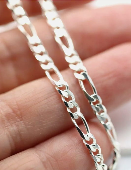 Sterling Silver 925 Bevelled Figaro Diamond Cut Chain 45cm, 50cm, 55cm, 60cm or 70cm Necklace