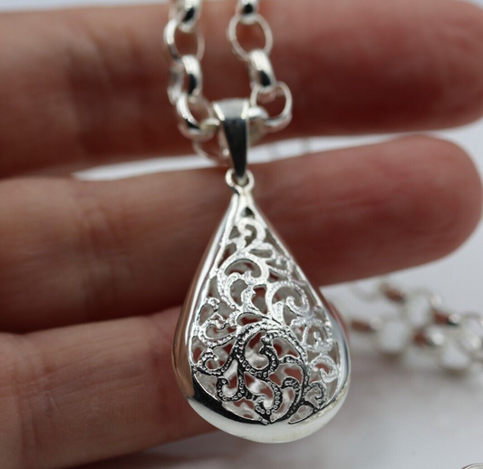 Sterling Silver 925 Belcher Necklace Chain 80cm + Filigree Pendant