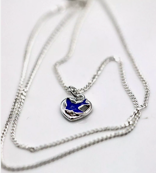 Sterling Silver Heart Enamel Blue Bird Pendant / Charm + 42cm Necklace