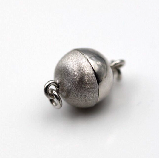 Sterling Silver Half Matt Half Polished Magnetic Ball 9mm or 10mm Pearl Clasp