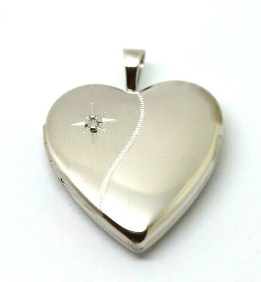 Sterling Silver Heart Diamond Heart Brushed/Polished Locket