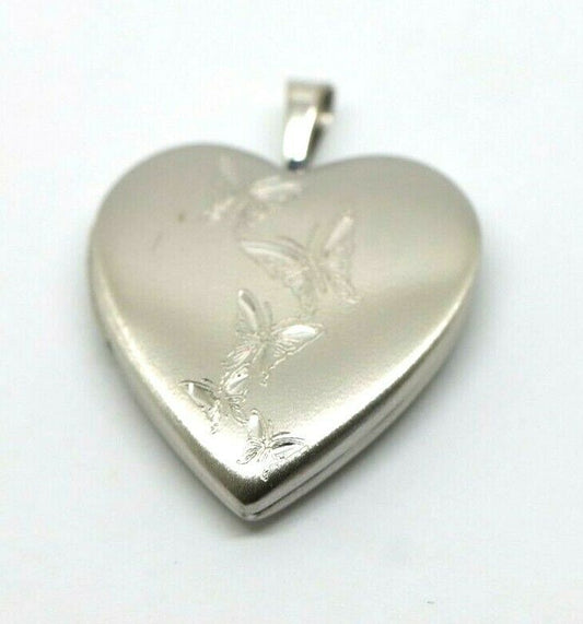 Sterling Silver Heart Heart Brushed Finish Butterflies Locket