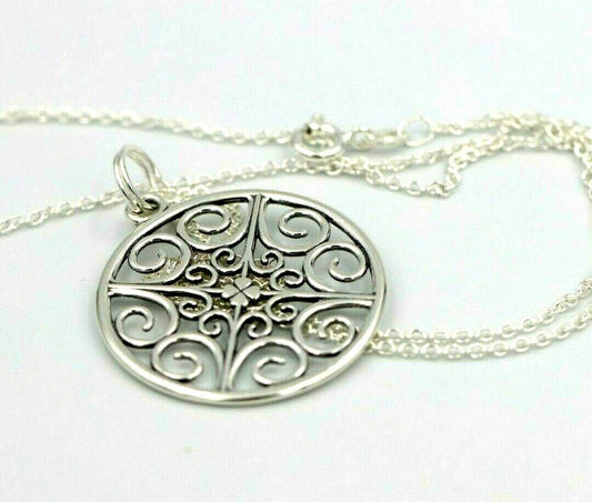 Sterling Silver Filigree Scroll Clover Pendant 55cm Belcher Necklace