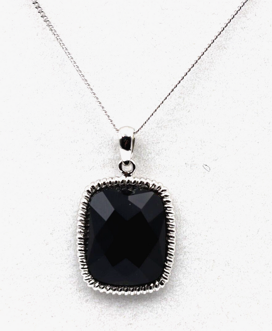 Genuine Sterling Silver 925 Cushion Cut Onyx Pendant