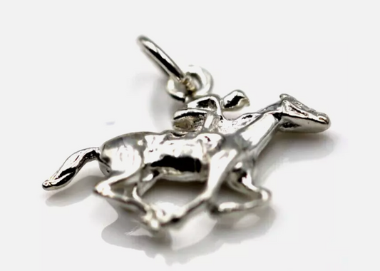 Genuine Sterling Silver 925 3D Horse & Jockey Charm / Pendant