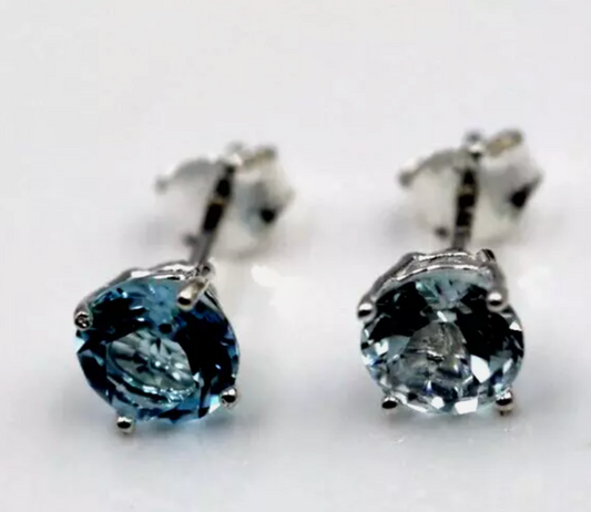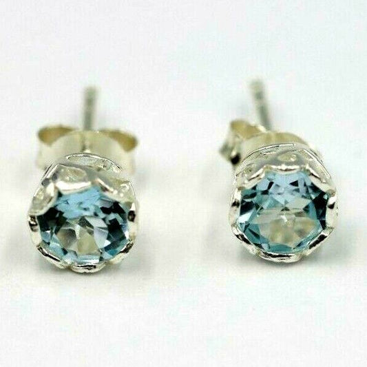 Genuine Sterling Silver 925 5mm Natural Blue Topaz Filigree Bezel Studs Earrings