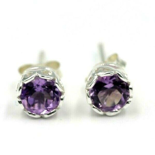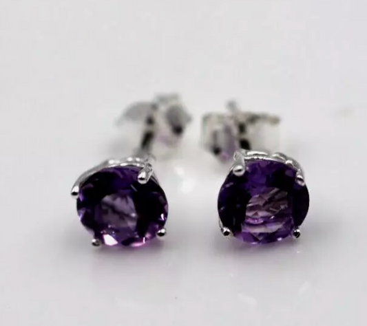 Genuine Sterling Silver 925 7mm Natural Amethyst Stud Earrings