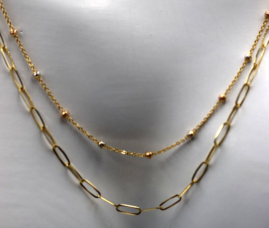 Genuine 46cm 18ct 750 Yellow Gold Paper Clip + Ball Chain Necklace Stackable