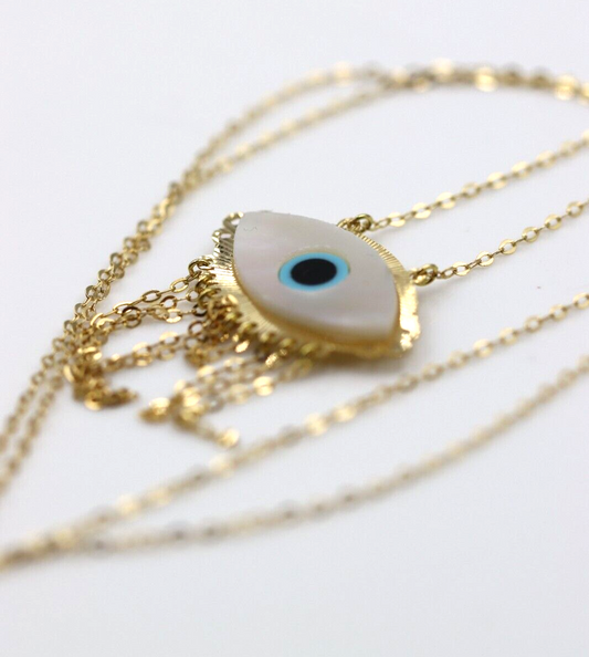 18ct 750 Gold Yellow Gold 43cm Mother Pearl Greek Eye Necklace Chain -Free express post