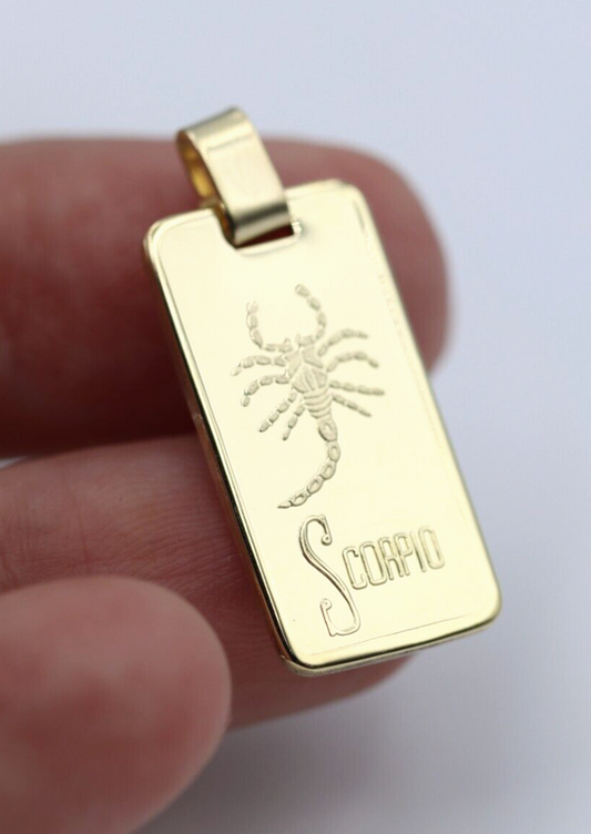 Genuine Large 9ct 9K Yellow Gold Rectangle Zodiac Scorpio Pendant 24mm x 12mm