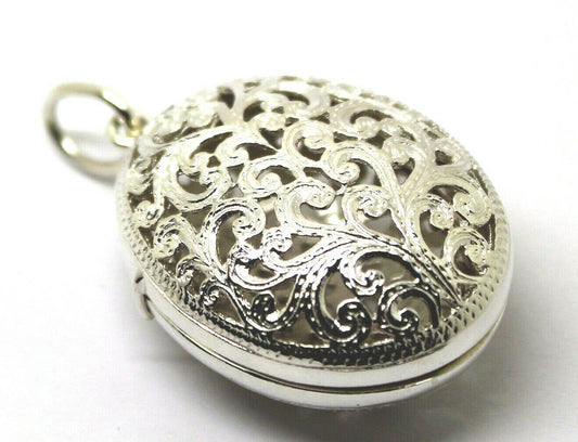 Genuine Huge Heavy Sterling Silver 925 Filigree Oval Pendant Locket