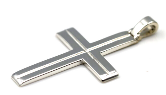Genuine Large Ridged Sterling Silver 925 Cross Pendant
