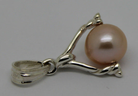 Genuine New Sterling Silver 8mm White Pearl Ball Spinner Pendant