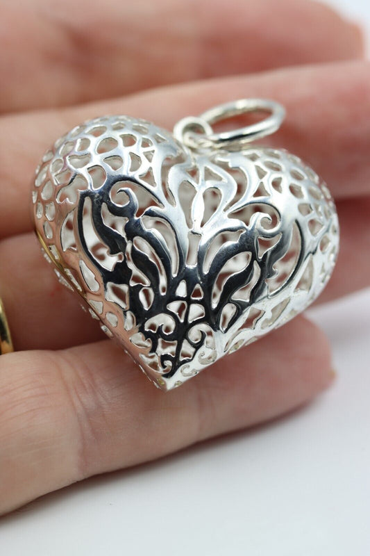 Genuine New Sterling Silver 925 Huge Heavy Large Filigree Heart Pendant