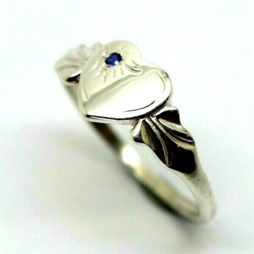 Genuine Size O Sterling Silver Heart Blue Sapphire Signet Ring