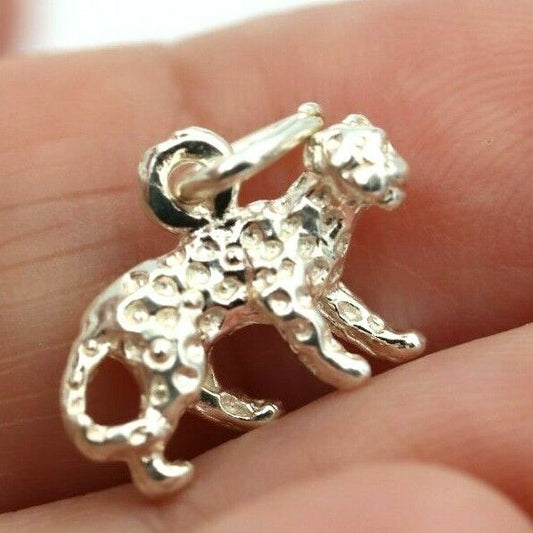 Genuine New Sterling Silver Solid Leopard Cat Pendant or Charm