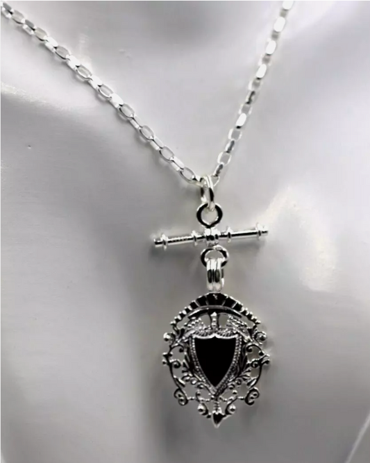 Genuine Solid Sterling Silver 925 Shield & T Bar Pendant