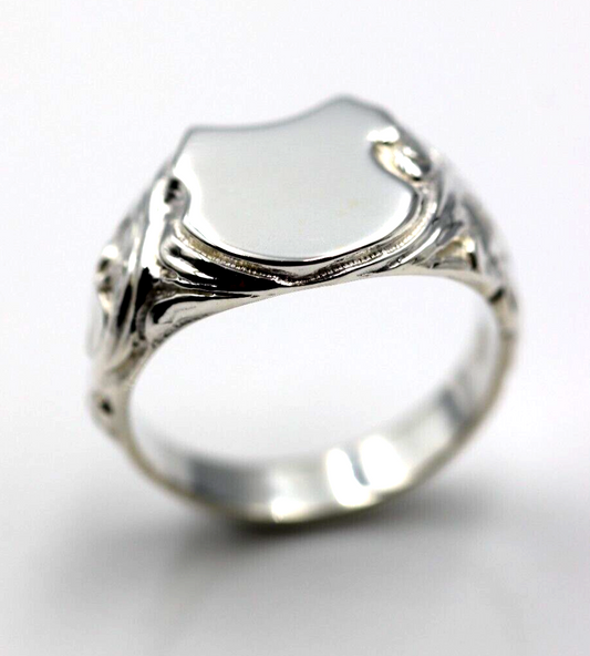 Genuine Solid Sterling Silver 925 Shield Engraved Signet Ring - Choose your size