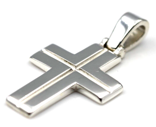 Genuine Solid Sterling Silver 925 Heavy Large Ridged Plain Cross Pendant