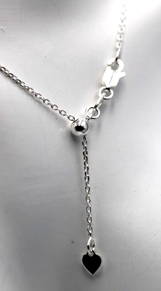 Genuine Sterling Silver 45cm or 58cm Slider Hanging Heart Necklace Chain