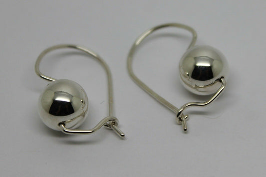Genuine Sterling Silver 10mm Wide Ball Hook Earrings