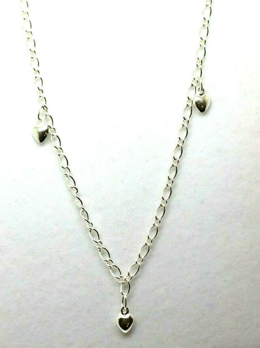 Genuine Sterling Silver 25cm Figaro Anklet + 3 Charm Hearts