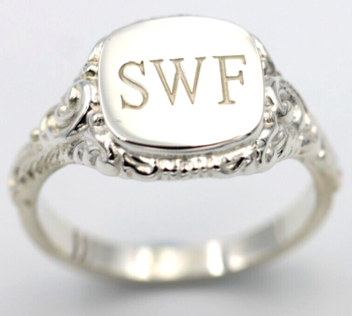 Genuine Solid Sterling Silver Square Engraved Signet Ring - Choose your size