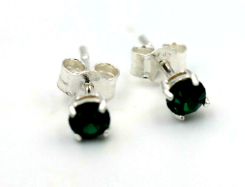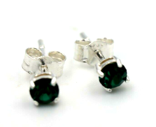 Genuine Sterling Silver 4mm Emerald Crystal Claw Set Studs (May Birthstone) Earrings