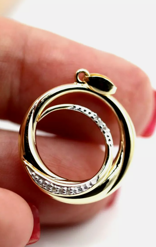 Genuine 9ct 9kt Genuine Diamond Set 20mm Double Circle Pendant