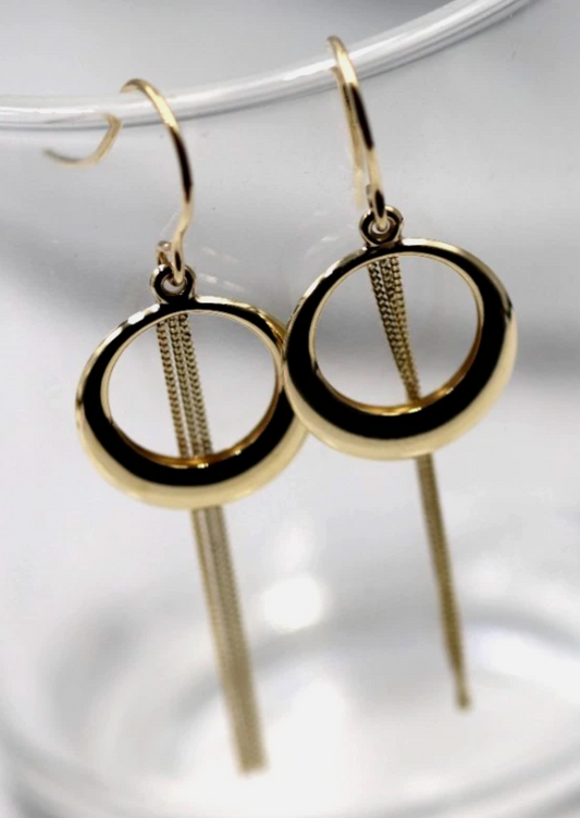 Genuine 9ct 9k 375 Yellow Gold Graduated Open Circle with Chain Drops Earrings
