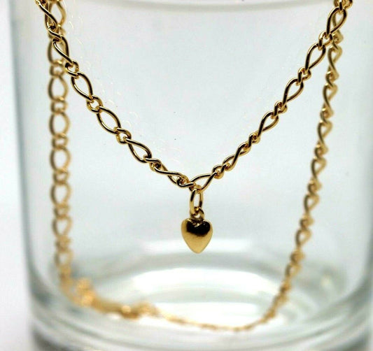 Genuine 9ct 9k 375 Solid Yellow Gold 25cm Oval Figaro Anklet with Heart Charm