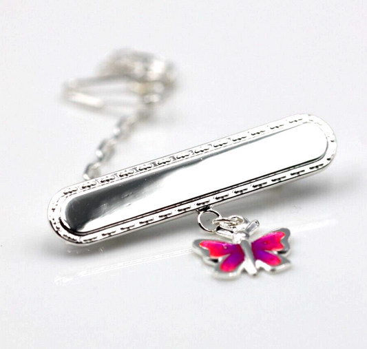 Sterling Silver 925 Pink Butterfly Pink Enamel Baby Brooch* Free laser engraving