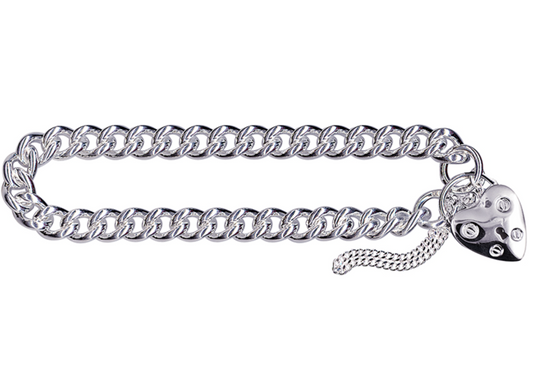 Sterling Silver 925 Round Curb Heart Screw Padlock Bracelet 19cm or 21cm 7mm wide