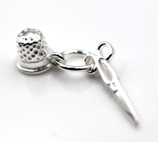 Sterling Silver 925 Scissors and Thimble Sewing Tailor Charm Pendant