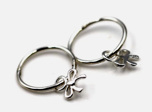 Sterling Silver 925 Sleepers Hinged Hoops Earrings + Bow Charms