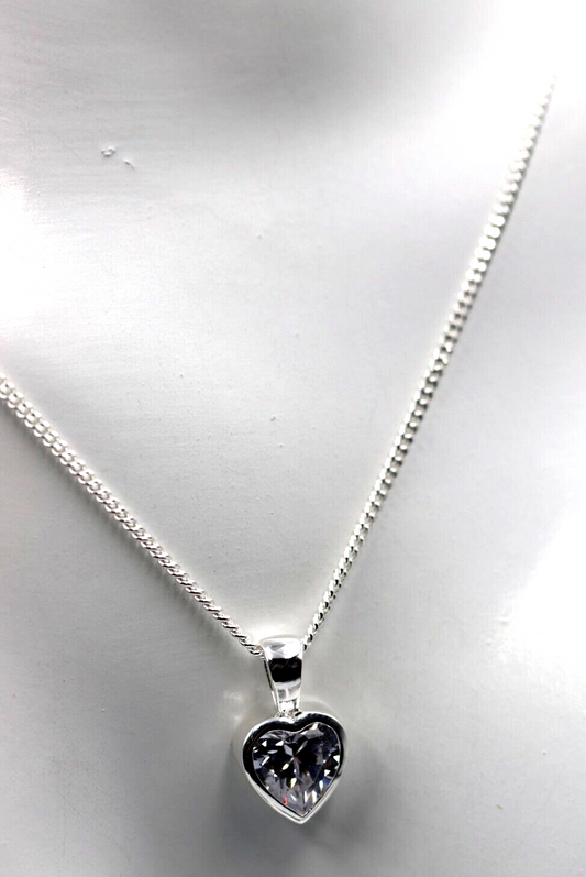 Sterling Silver 925 Small Bezel Set CZ Heart Pendant Charm Necklace