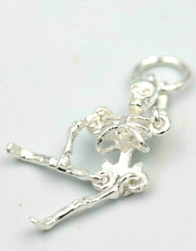 Sterling Silver Moving Skeleton Movable Pendant Charm Halloween Skull