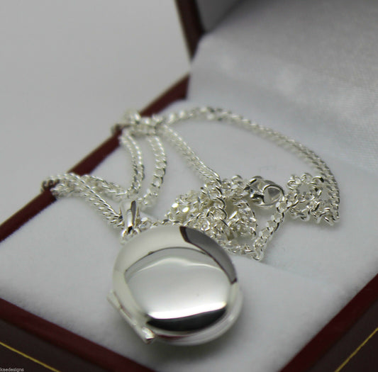Sterling Silver Oval Locket Pendant 2 Photos & 55cm Silver Chain