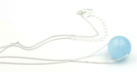 Sterling Silver Natural Aquamarine Bead on 45cm chain + 5cm Extender